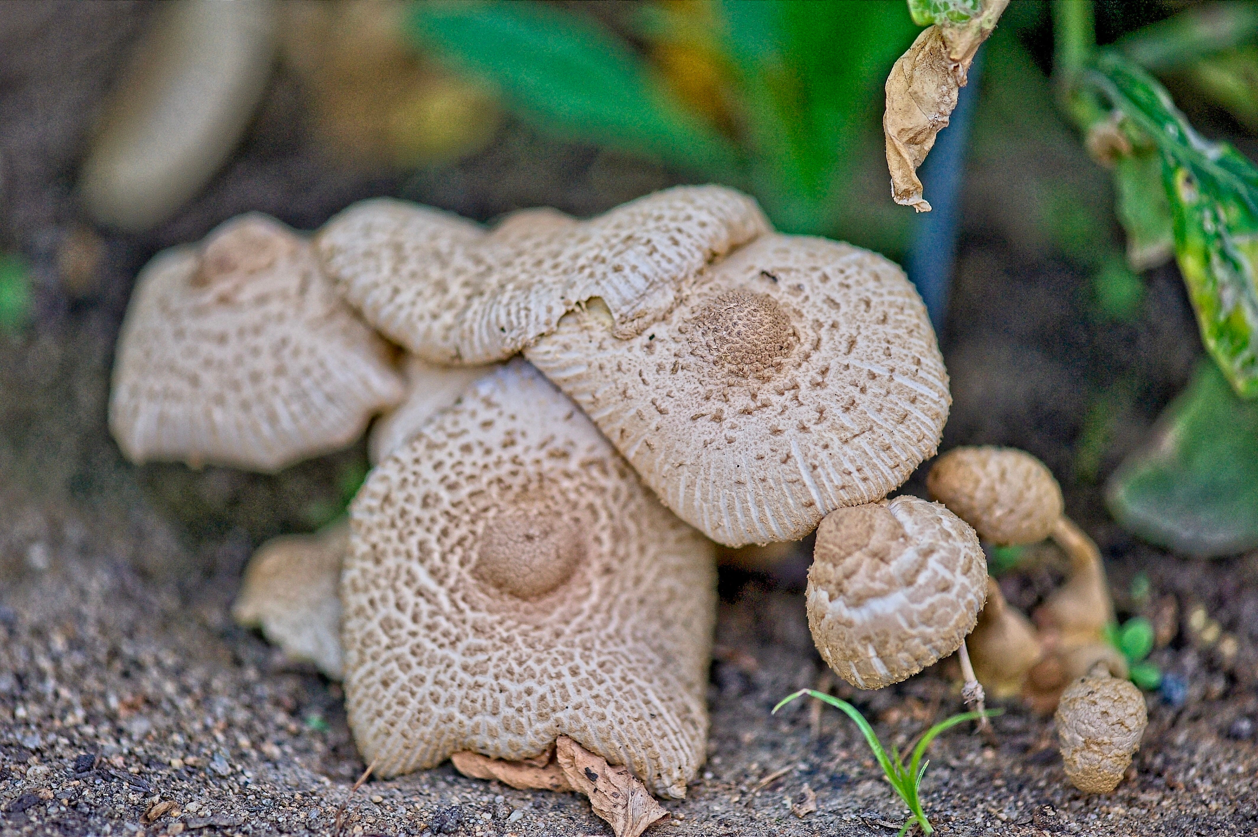 A cluster of mushrooms had pushed through the soil right in my own yard.
